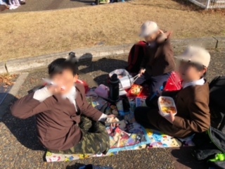 楽しくお弁当を食べていました。