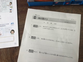 今日の体育の時間は保健の授業です。体を清潔にすることの大切さなどを学習しています。