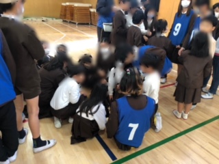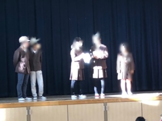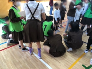 舞台の上で集会委員の子どもたちがルールを説明し、進行していきます。
