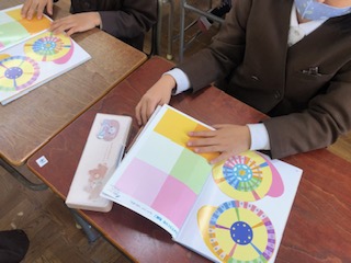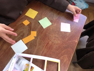 教科書の後ろに綴じ込んである図形を切り取って、学習を行っています