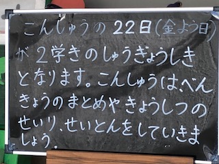 今週の22日が2学期の終業式です。(給食はありません)