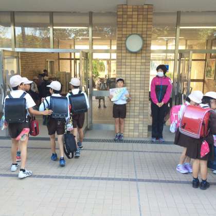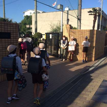 今月も、運営委員会の皆さんがあいさつ運動を始めてくれています。