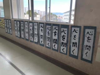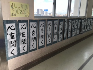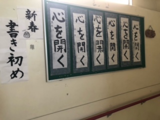 冬休みが終わると廊下には書き初めが貼られてありました