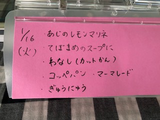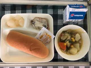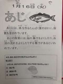 今日の給食には、魚のあじがでました。和なし、マーマレードもつきました。
