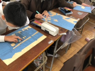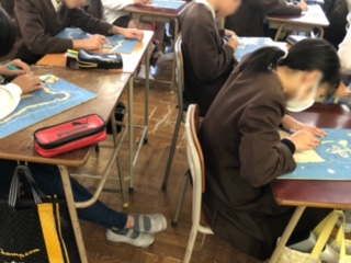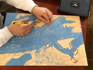 版画を彫っています 6年生