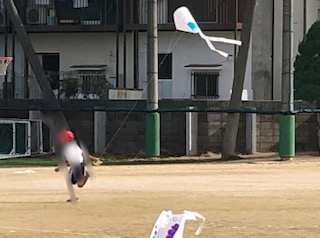 寒さに負けずに凧をあげています。今日は風もあってよくあがるようですね。
