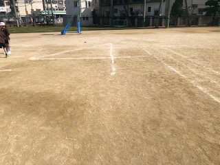 運動場に書かれて文字の上に子どもたちや教職員が並んでいきます。