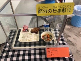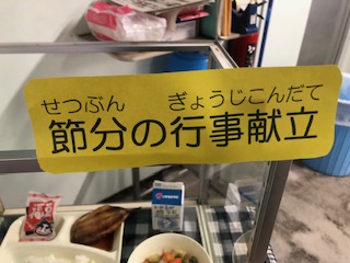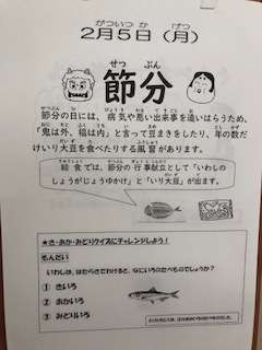 今日は節分の行事献立です。給食カレンダーには節分の風習について書かれています。