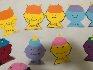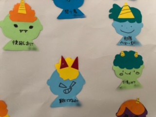 2月といえば節分、そして、鬼さん。自分の中にあるおに(苦手なことなど)を退治する思いを、おにとして表しています。