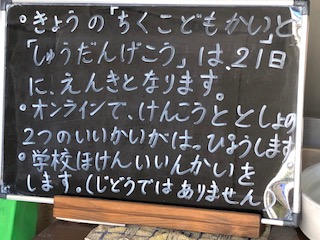 ◯地区子ども会は21日に延期となりました。