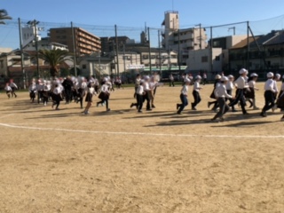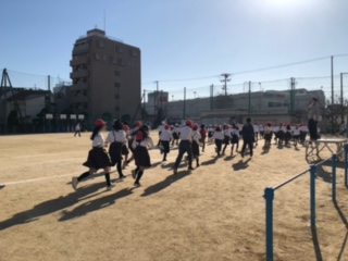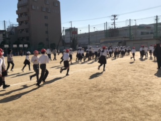 二日遅れて今日からかけ足週間が始まりました。3年生と5年生が走っています。