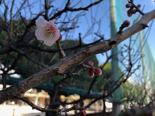 校内のプロムナード(正門から校舎に行く通路)の梅が咲き始めました。まだまだ寒いですが、一足早い春を感じますね。