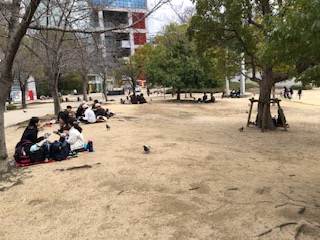 読売新聞社から歩いて扇町公園に着きました。ここでお弁当を食べます。