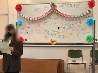 二分の一成人式をしました。おうちの人への感謝の言葉もありました。