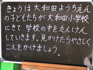今日は大和田幼稚園の子どもたちが大和田小学校に来て、学校の中を見てまわります。