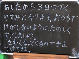 明日の天皇誕生日から3連休となります。今週の温かさではなく、本来の寒さが戻るようです。体調に気をつけてすごしたいですね。