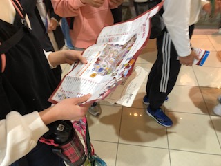 キッザニア甲子園に入る前にチケットが配られました。地図、体験した場所のカード、ランチチケットです。
