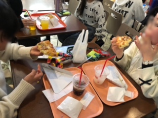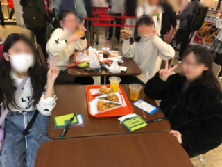 お昼ごはんは子どもたちが相談してランチチケットで食べられるものを食べたい時間に食べます。11時頃までに食べているグループが多かったようです。