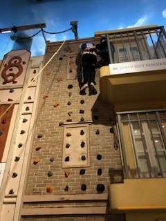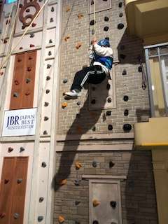 ロープで登って作業する体験です。この写真は降りてきているところです。