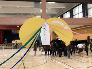 入り口のアーチをくぐって6年生が入場します。