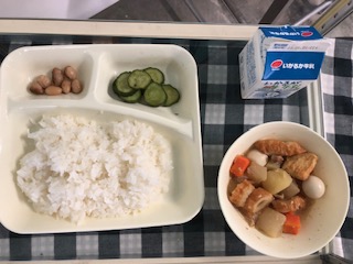 今日の給食には、うずら卵がでました。のどに詰めないように、給食室の献立見本によくかんで食べるように掲示したり、放送で注意を促したり、担任が指導したりしました。