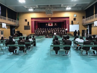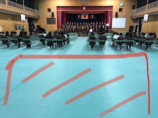 5年生の後ろに保護者席が設けられます。写真中の赤いエリアです。