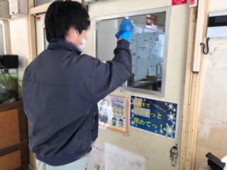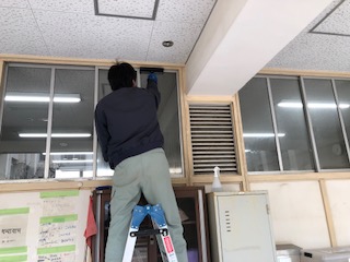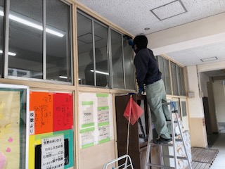 管理作業員も窓のそうじをしています。(写真は職員室です)