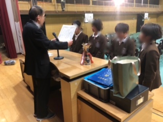全体では修了式の時に表彰しますがその時には6年生はいないので、今日、6年生の表彰を行いました。