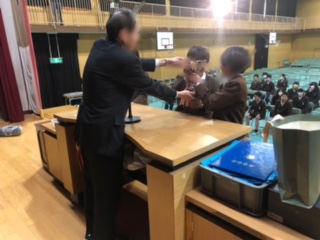 6年生がそろっている中で講堂の舞台で手渡されました。