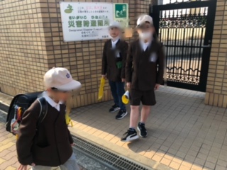 あいさつ週間の最後の日は、6年生が正門に立ちました