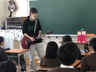 別のクラスでは担任が得意のギターで子どもたちと交流しました