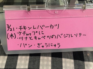 今日は最後の給食です。チキンレバーカツがでました。