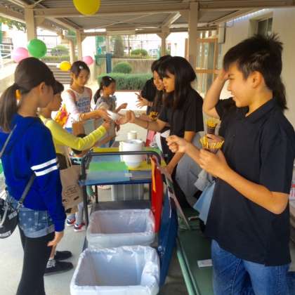 ゴミステーションの様子です。担当してくれているのは、中学生の大和田ジュニアリーダーの皆さんです。