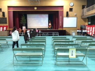 入学式で2年生は歓迎セレモニーで1年生の入学をお祝いします。前日の今日、練習をして明日に備えていました。