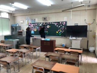たくさんある配布物を整えたり、1年生の教室を飾ったりしていきました。