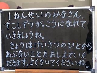 今日は1年生が警察の方から防犯について教えていただきます。
