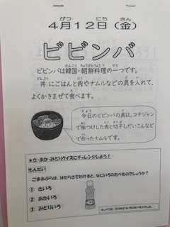 今日の給食には、韓国・朝鮮料理のビビンバ、トックが出ました