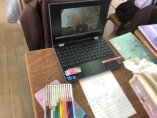 端末で撮ったサクラやチューリップなどの写真をもとに進めています