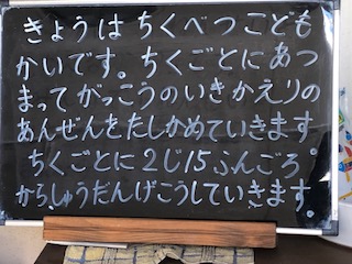 今日の5時間目に地区別子ども会を行います。2時15分くらいから遠い地区から順番に集団下校していきます。