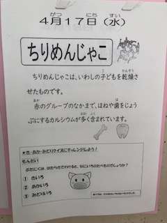 今日の給食には、ちりめんじゃこを使った献立がでました