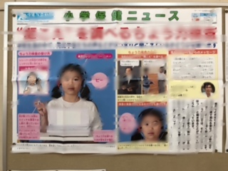 聴力検査を学年ごとに行っています。保健室には「小学校保健ニュース」が貼られています。(この保健ニュースにはモザイク処理しています)