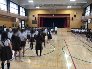 児童朝会は、月曜日に行いますが、休日の時は週明けの火曜日に実施しています。