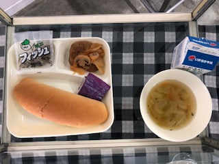 今日の給食には、子どもたちに人気の煮込みハンバーグが出ました。