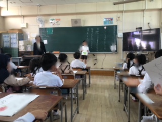 順番に画用紙に書いた名前を見せて自己紹介をしていきました。最後に音読もしました。