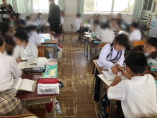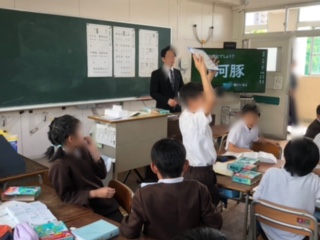 漢字辞典を使って調べています。グループごとに発表もしています。