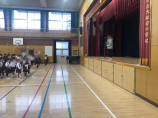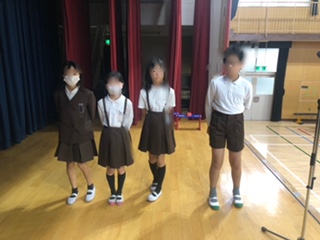 代表委員の子どもたちがおはようございますのあいさつをします。