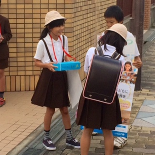 ひとりひとりの児童が、世界中のすべてのこどもたちのために「子どもたちの命を救おう」と募金活動をしています。