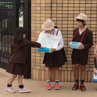 今朝も、運営委員会の児童が「ユニセフ募金活動」をしてくれていました。
