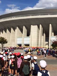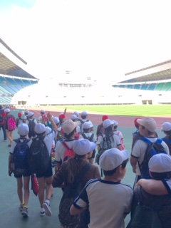 世界的なスポーツ大会が行われるスタジアムにこどもたちは興奮気味です。