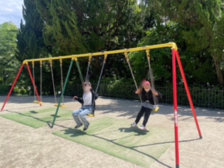 子どもたちが遊具で心ゆくまで遊んでいました。帰る途中で池田城が見えました。(写真上)